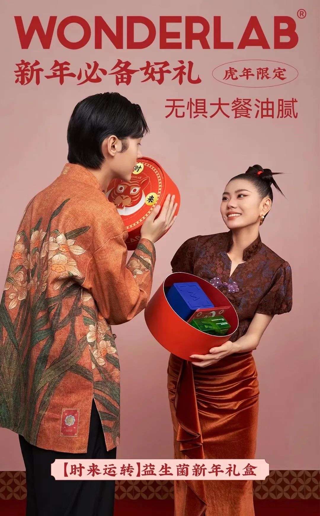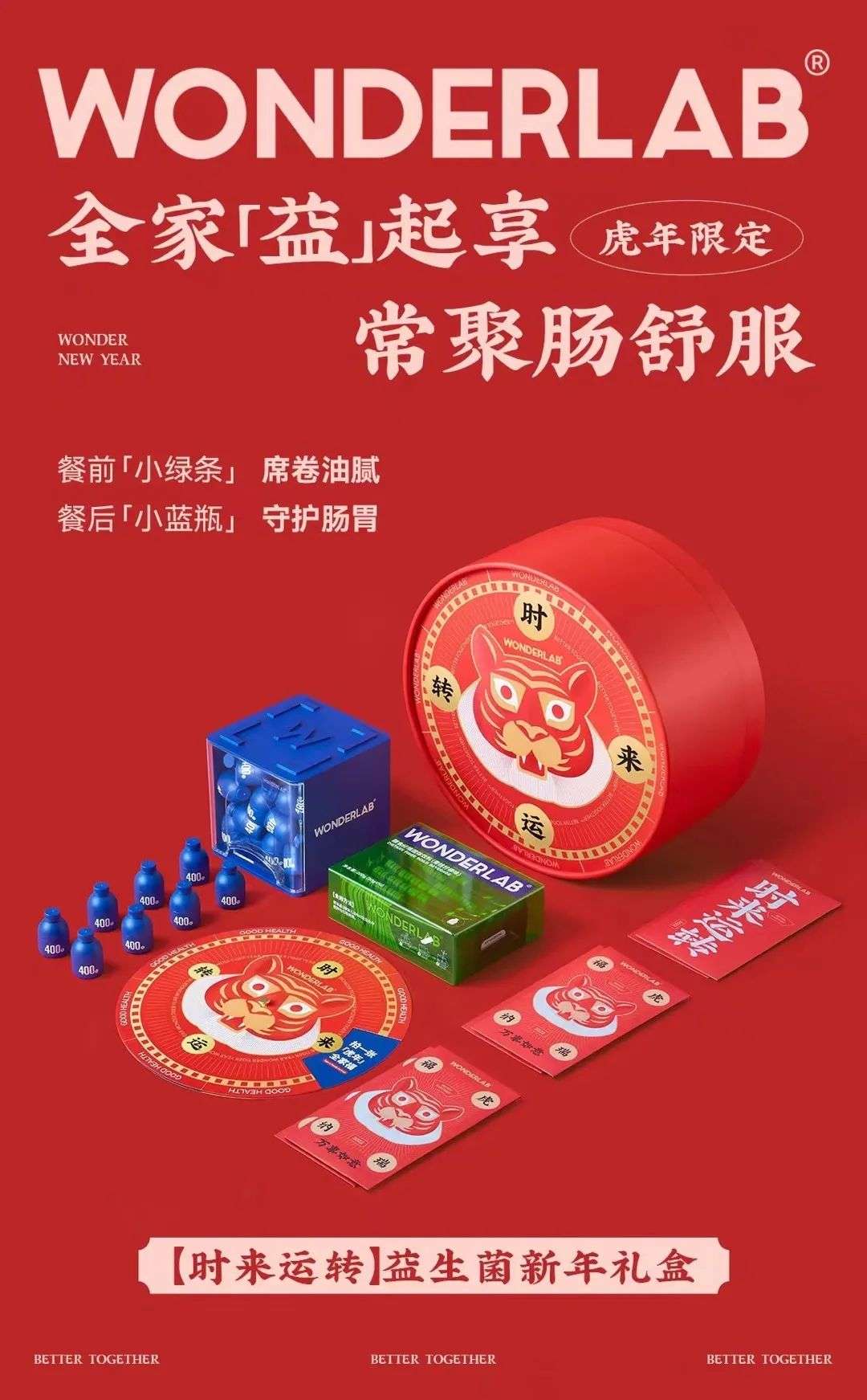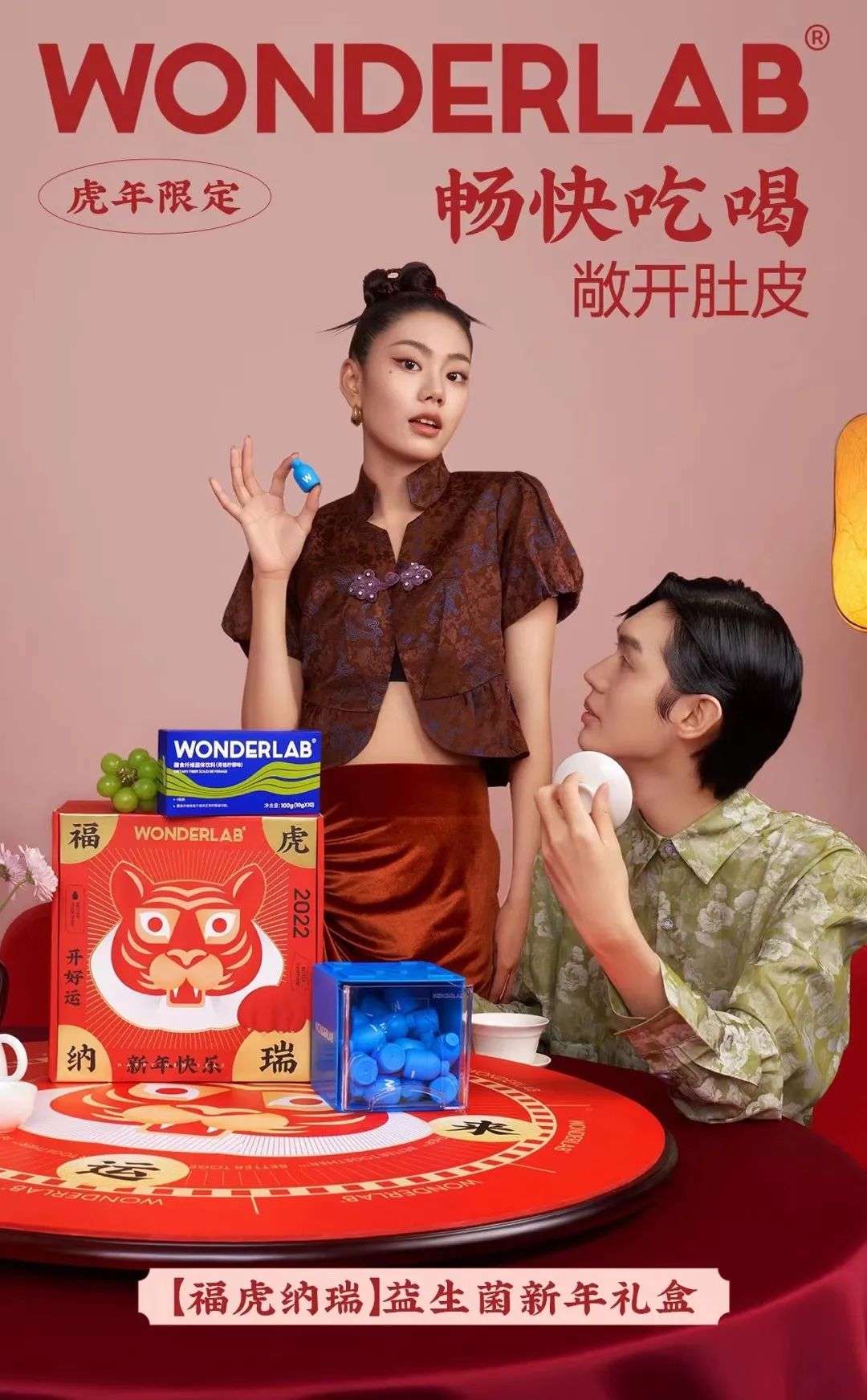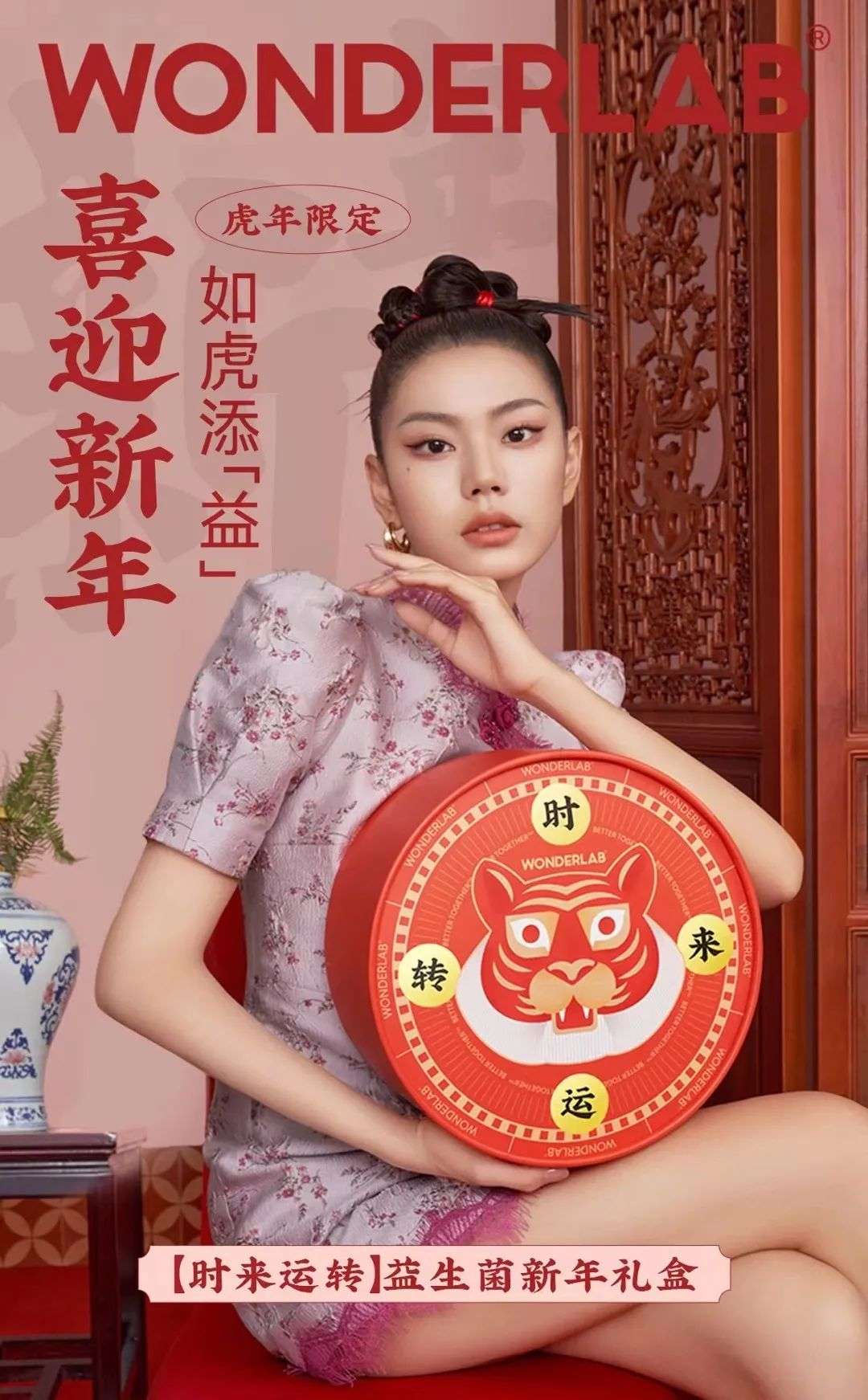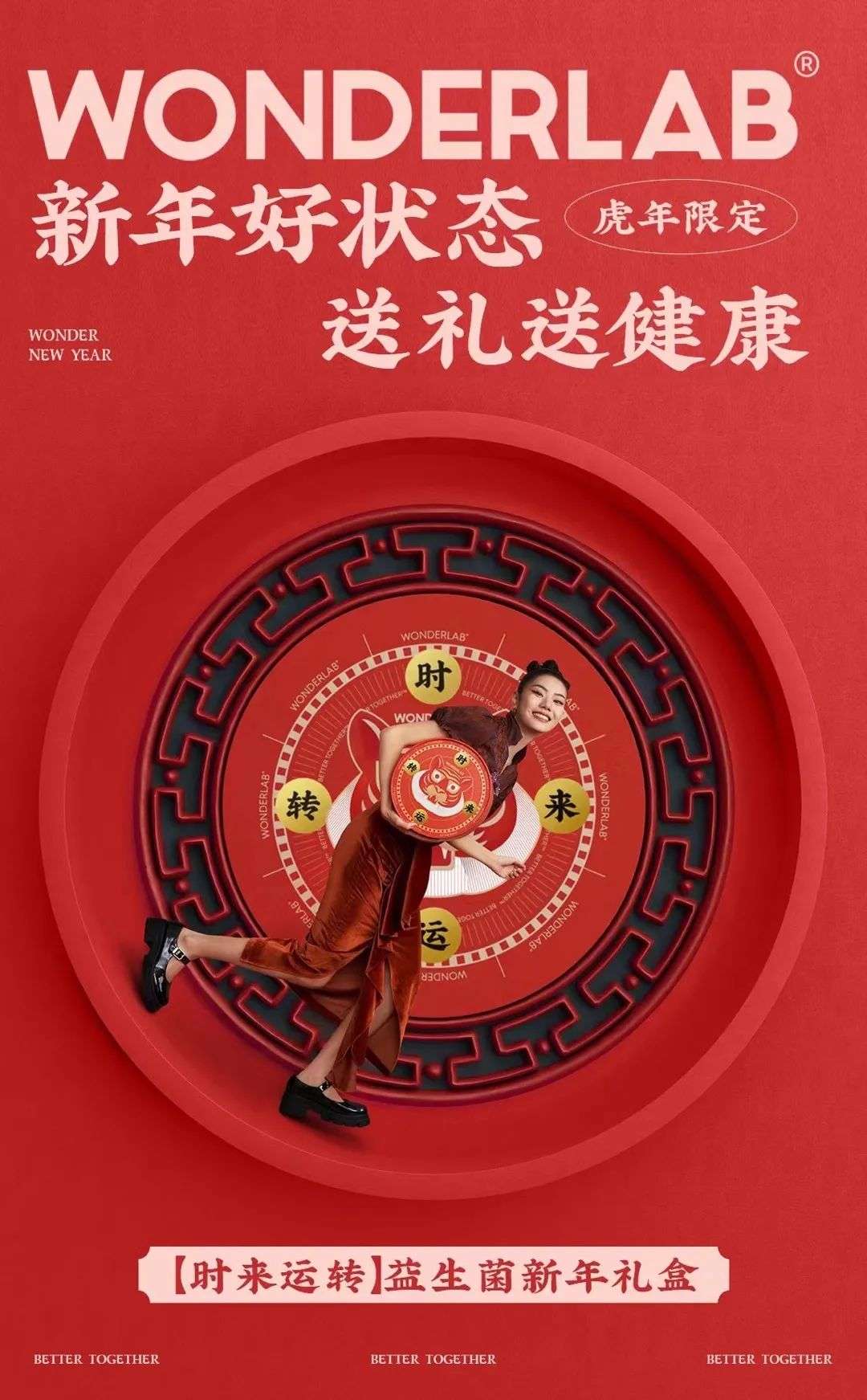 WONDERLAB的“时来运转”益生菌新年礼盒主打国潮,送健康非常符合企业文化,也很好地贴合了春节大家容易暴饮暴食的问题,植入自己的产品。这组大片,排得最有水准。