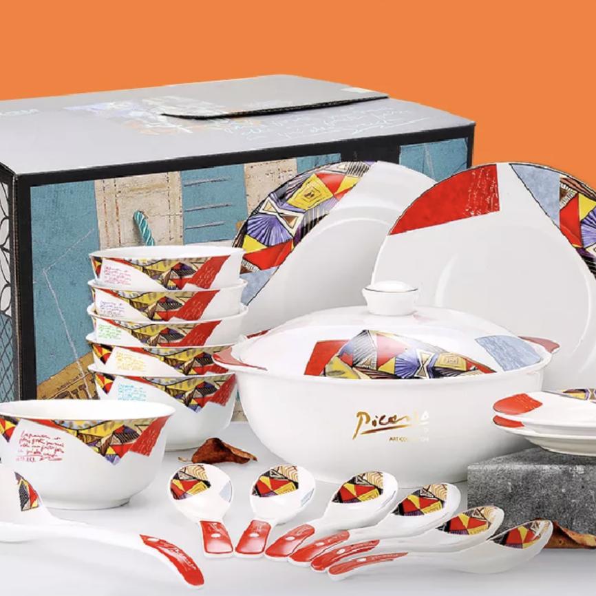 有人送锅,怎么能少了碗瓢盆呢。微医的“虎年比旺”新年礼盒就送出了毕加索餐具,有碗、勺子、盘子和汤锅,团圆饭的装备,这下都齐了。就是缺了几分主打健康的企业文化。