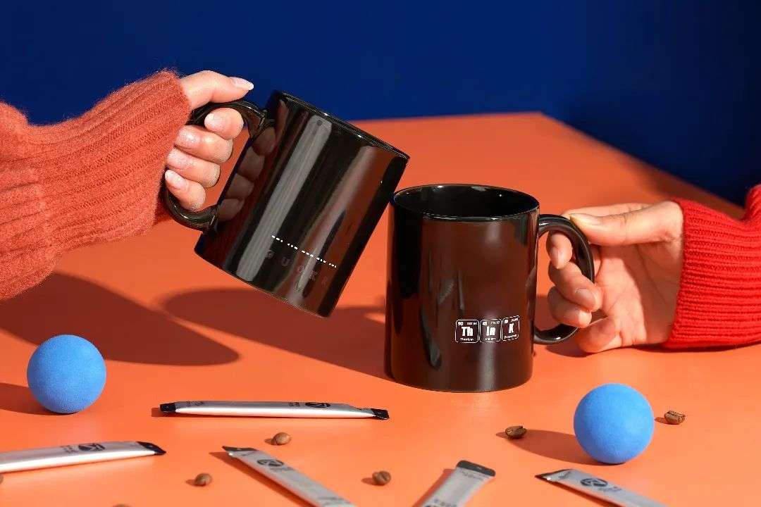 果壳新春礼盒的主题是虎年冲冲冲,包含果壳旗下品牌“豆选”推出的“闪”咖啡,一个巧思暗藏的果壳文创马克杯,和一台桌面即热饮水机,非常实在。整个礼盒充满了果壳一贯的geek式幽默,比如感温变色马克杯的设计,则是来源于果壳的“geekmon”文创系列,钍、铟、钾,就是Th+In+K=Think。热咖啡冲进去,灵感猫闪现!