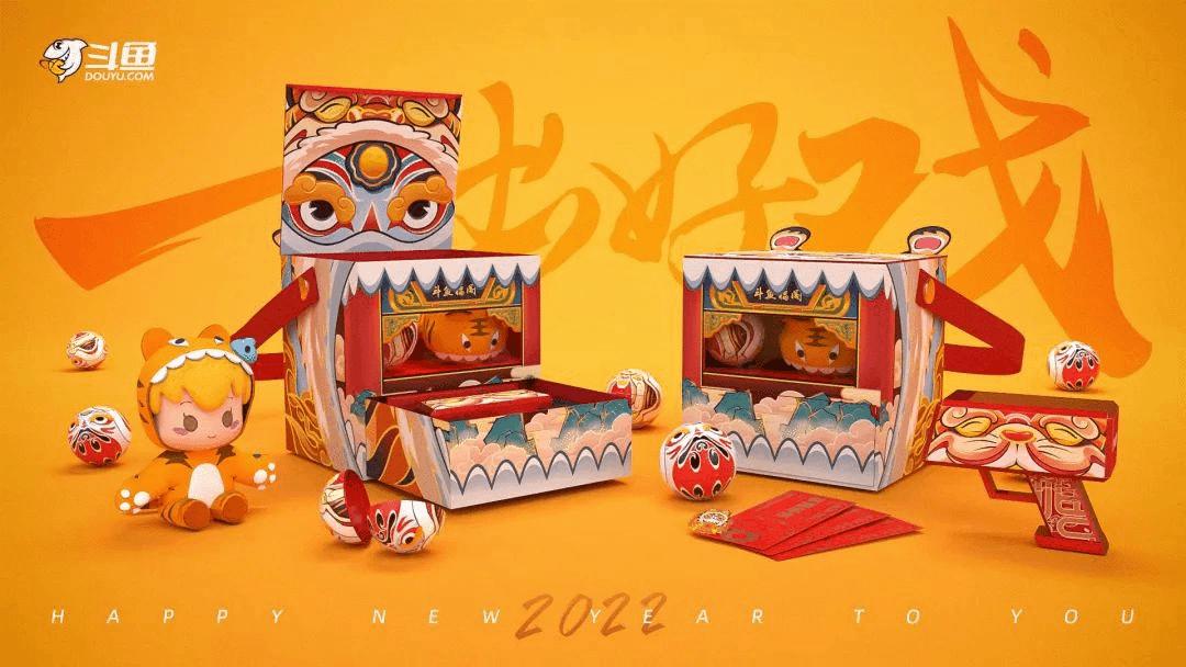 斗鱼“一出好戏”新年礼盒,像一个戏台,里面的东西呢,就像是在戏台上唱戏的角色,名字估计是这么来的,很有传统文化的范儿。即便是再有文化呢,在新春祝福上,也无法免俗,谁让大家都在拼命“搞钱”呢,两把钞票枪活力十足。
