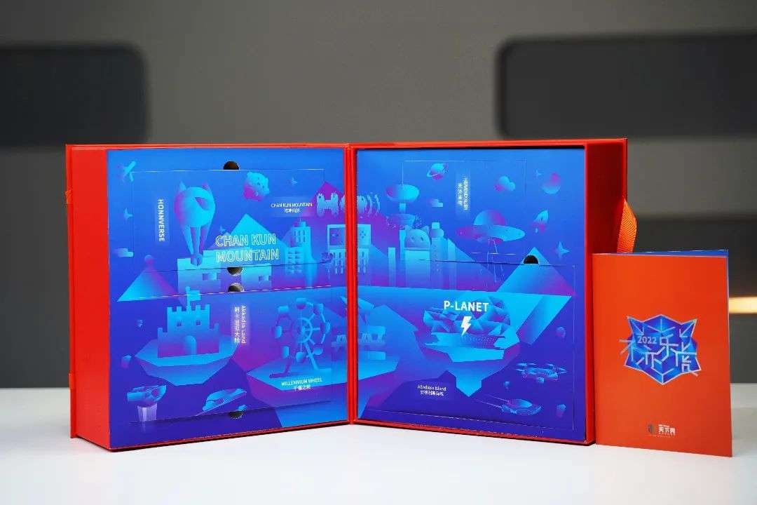 谁能拒绝开盲盒的神奇魔力呢?天下秀的新春礼盒,绝对是大叔收到的最新潮礼盒,因为融入了盲盒和元宇宙,还给大叔送了一个“房子”呢。礼盒以赛博朋克风盲盒设计为基调,首次结合3D虚拟生活社区产品honnverse虹宇宙打造“虎年盲盒新礼”,有特别定制的honnverse虹宇宙房屋兑换卡和《元宇宙超入门》,还有网红零食呢。