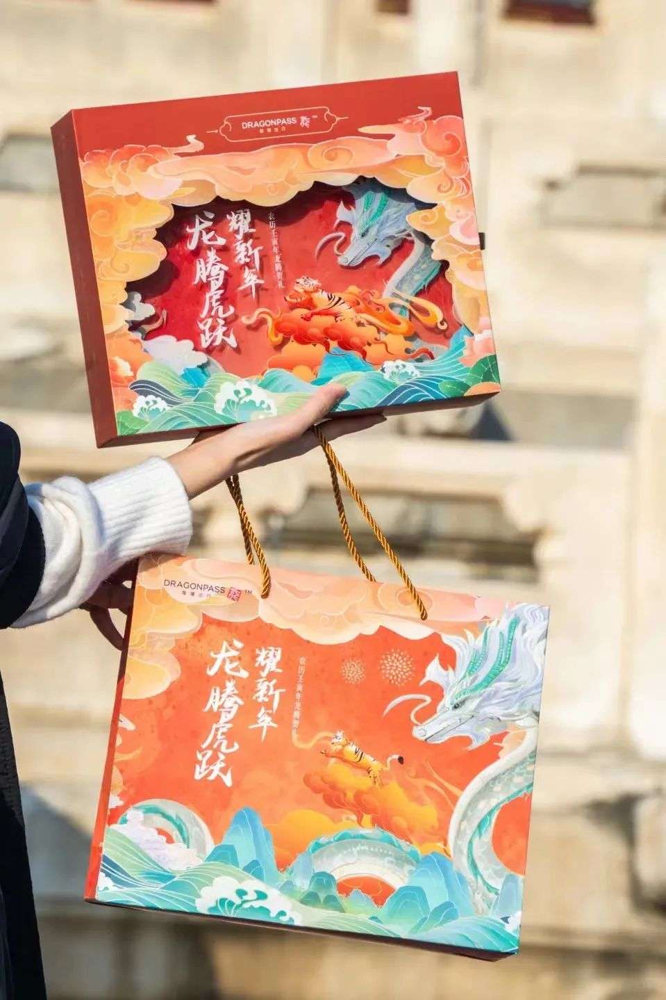龙腾出行的礼盒也非常精致,礼盒一打开,蛟龙现身,天降祥瑞,分层设计,还有灯光效果。除了同一主题的周历、红包、本子外,舒适眼罩和龙腾出行的体验卡,都十分符合出行的需求。