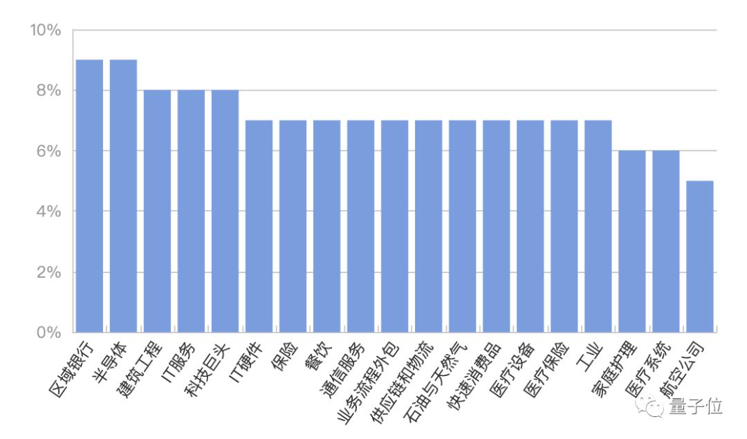 (下图中纵轴代表平均离职率,横轴代表不同行业)