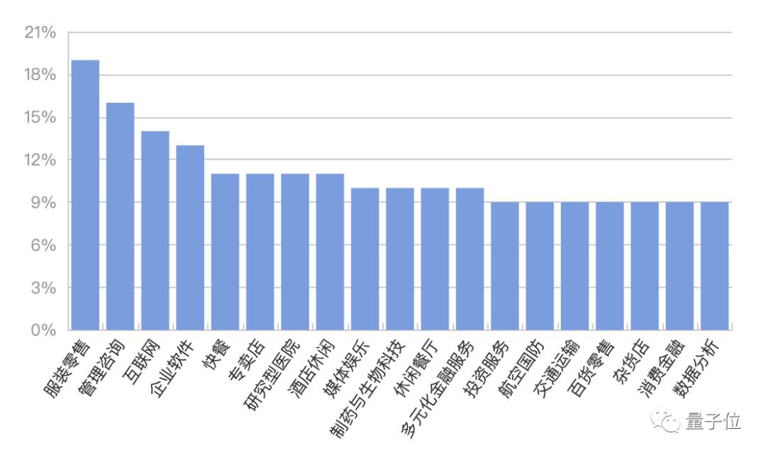仅次于服装零售行业的就是管理咨询和互联网行业,离职率分别是16%和14%。
