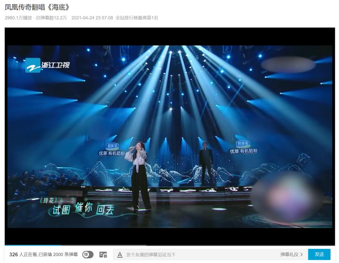 虽然节目出现了许多网红评价专业音乐人的“名场面”,豆瓣仅有4.6分,但或许可以算是一次与短视频平台结合的音综实验——凤凰传奇在节目中翻唱的抖音神曲《海底》出圈,节目播出后曾位居网易云音乐飙升榜、音乐新歌榜、音乐热歌榜三榜Top1,目前在B站也收获了超过2900万的播放量。