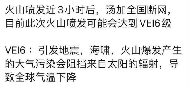 这次汤加火山爆发后,网上有很多关于它的讨论(流言),比如下图——