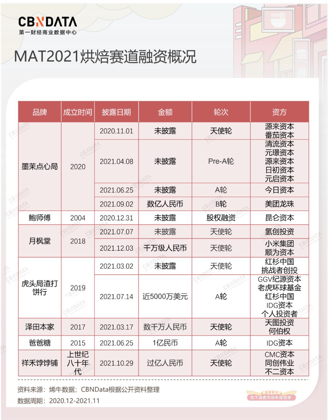 被“重金”押注的烘焙赛道在2021年迎来了高光时刻。根据烯牛数据,2021年共有七个线下烘焙品牌拿到了融资,融资次数达到了12次。