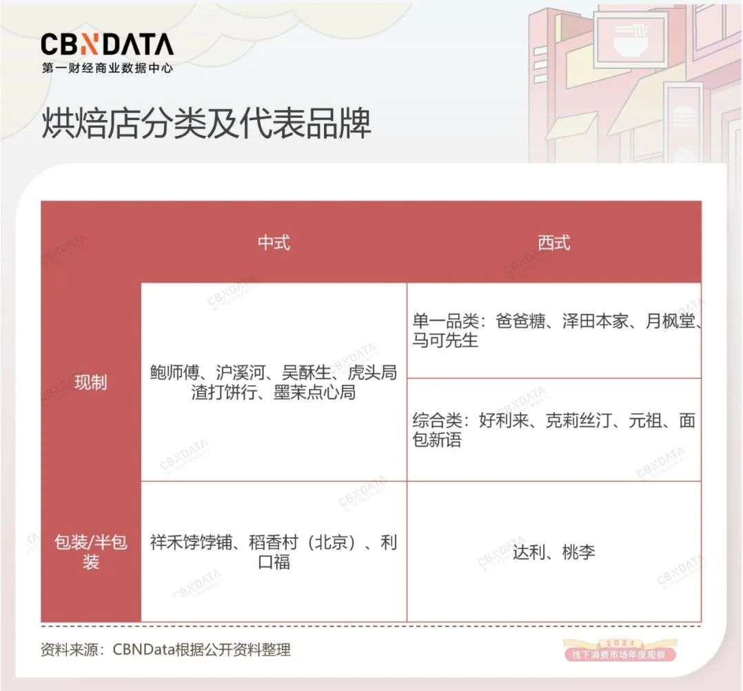 2021年大火的虎头局渣打饼行(下称“虎头局”)、墨茉点心局(下称“墨茉”),以及早些年就已经成为人气品牌的泸溪河、鲍师傅都属于中式现制类烘焙店,门店主要采用了“前店后厨”的模式。老字号中式烘焙品牌如祥禾饽饽铺、稻香村(北京)、利口福等则是通过品牌专卖店销售包装/半包装成品的代表。在西式烘焙门店中,现制品牌早期大多主打综合品类,如面包新语、好利来、克莉丝汀等,近年来则出现了一批垂直于某一细分品类的西式现制烘焙品牌,如吐司品牌爸爸糖、可颂品牌月枫堂、欧包品牌马可先生、铜锣烧品牌泽田本家等,包装类烘焙品牌则以达利和桃李等为代表。