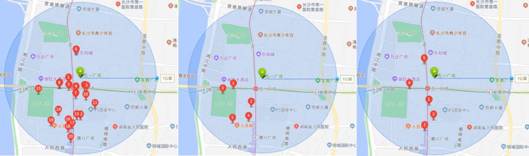 墨茉(左)、虎头局(中)、吴酥生(右)在坡子街街道方圆一公里内布局资料来源:高德地图