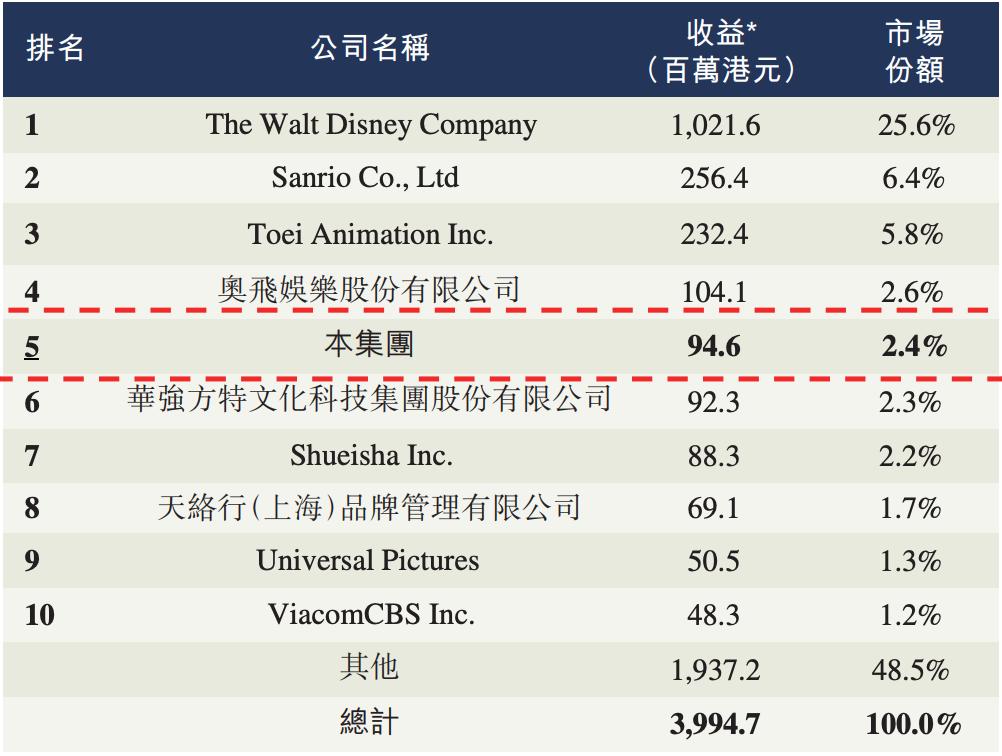 先看IP授权赛道。从结果来看,根据弗若斯特沙利文的报告,按2020年的角色授权收益计算,德盈控股排名第五,市场份额为2.4%,落后于国内玩具厂商奥飞娱乐,与另一位国内游乐园玩家方特文化近乎持平。