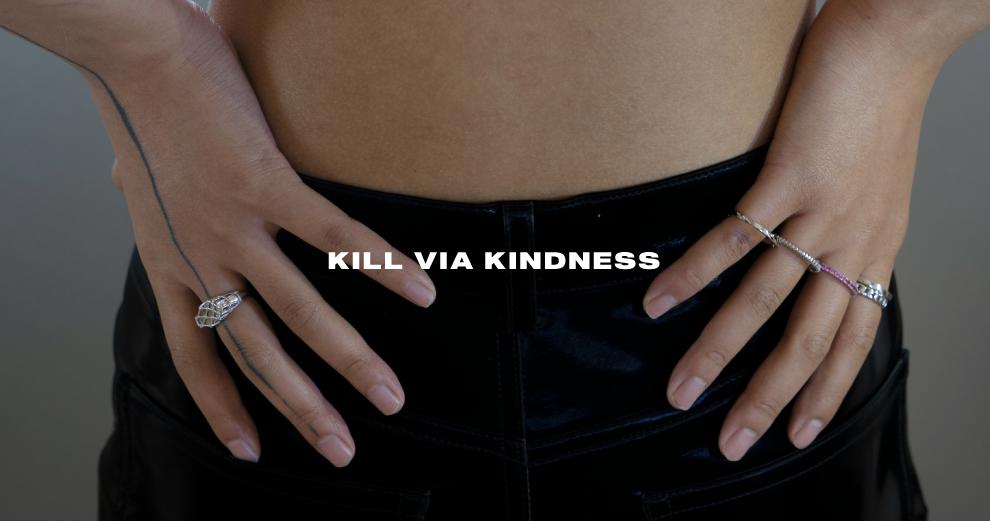 KVK 成立于 2019 年,全称为“KILL VIA KINDNESS”,定位综合性配饰品牌,以“自由重组”作为品牌哲学,打破二元性别论,对“女性化”特质进行多元解读。