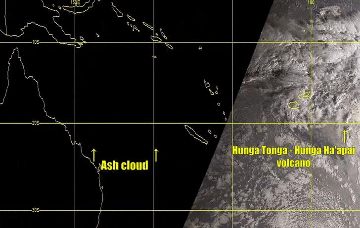 新西兰气象局报告说,汤加火山喷发产生的火山灰正向西飘向澳大利亚北部,高度在12-20公里之间。