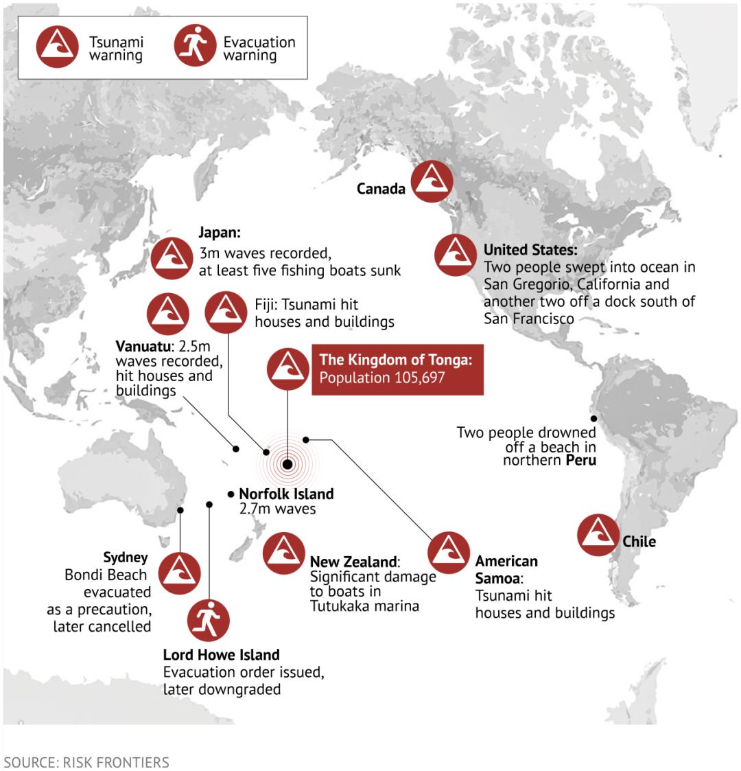 整个太平洋地区,包括斐济和瓦努阿图,以及远至9000多公里外的阿拉斯加,都听到了火山爆发产生的音爆声。