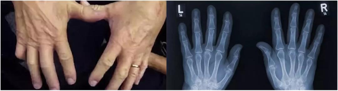 而 50 年后,他两只手的状态,无论是肉眼所见还是 X 光影像,并没有任何差别,都很健康。