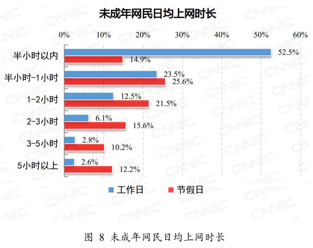 不难预想,战况必然十分激烈。特别是线下娱乐产业在反反复复的疫情中遍野哀鸿,小学生只能转向互联网消磨时间。根据共青团中央维护青少年权益部、中国互联网络信息中心联合发布的《2020年全国未成年人互联网使用情况研究报告》显示,未成年网民工作日平均每天上网时长在 2 小时以上的为 11.5%,节假日平均上网时长在 5 小时以上的为 12.2%。可想而知,寒暑假的情况可能更为严峻。