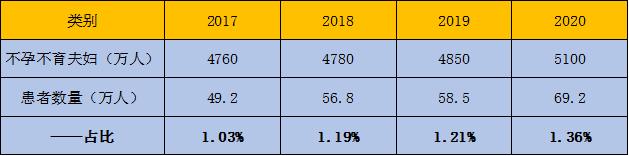 3)育龄夫妇的不孕不育率从二十年前的2.5%-3%,攀升至近年12%-15%,不孕不育者约5000万。
