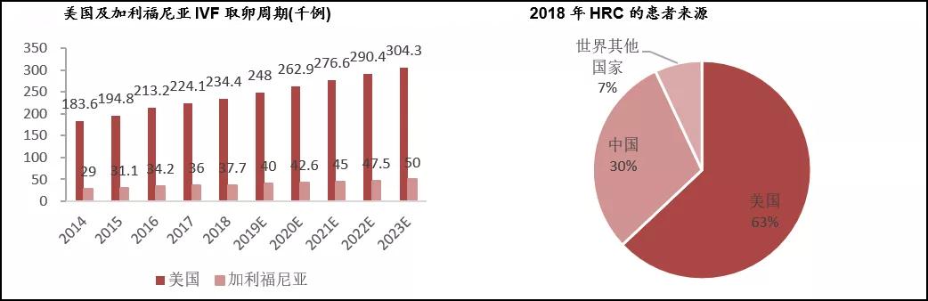 图: 加州IVF取卵周期及HRC患者来源,来源: 西南证券