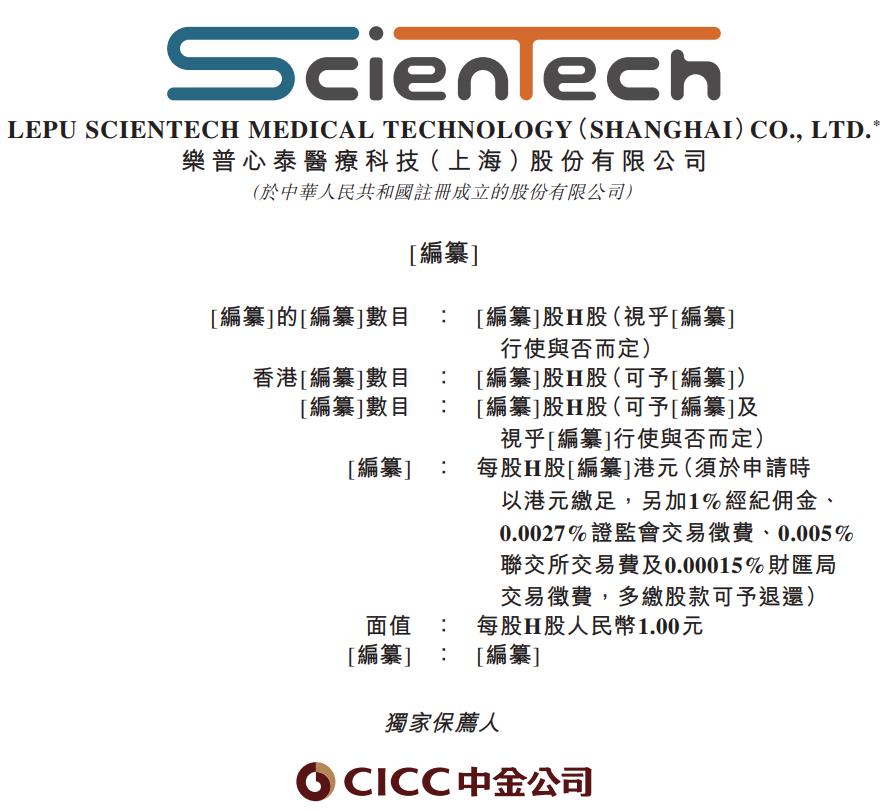据港交所1月14日披露,乐普心泰医疗科技(上海)股份有限公司向港交所主板提交上市申请,中金公司为独家保荐人。