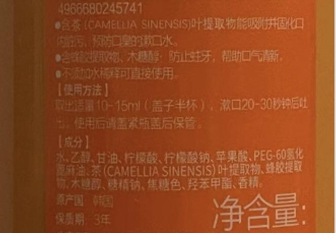 相比之下,以蜂胶为特色的这一款则是另一个极端,其配方中不含任何杀菌剂,核心成分就是蜂胶提取物和茶叶提取物,起到清新口气的作用,和口香糖的作用差别没有太大。至于标签上所宣传的预防口臭、防止蛀牙,用清水漱口也可以达到类似效果,加不加漱口水区别不大。