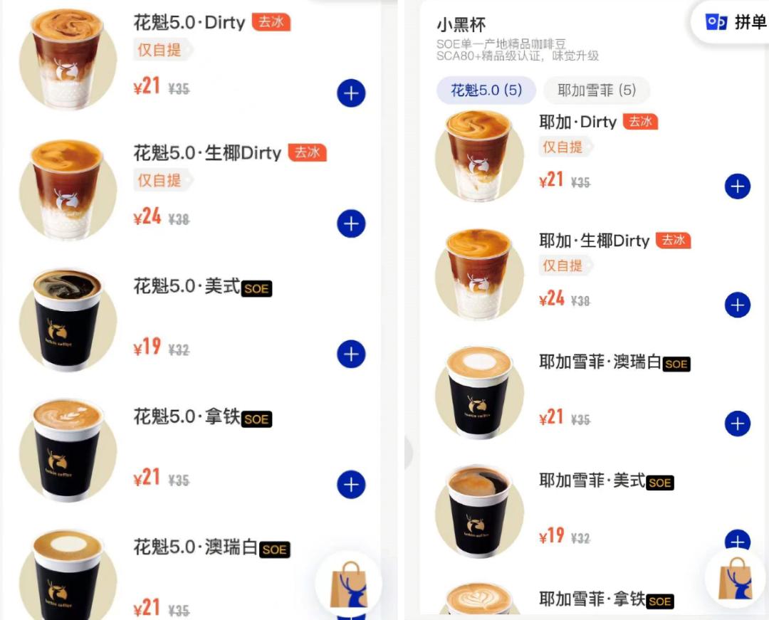 花魁系列和耶加雪菲系列售价,图源瑞幸官方小程序