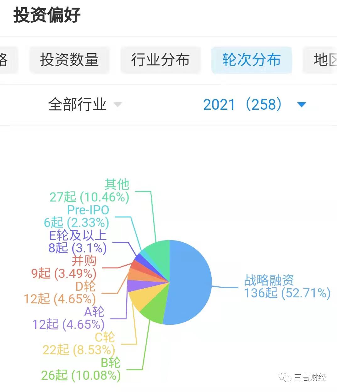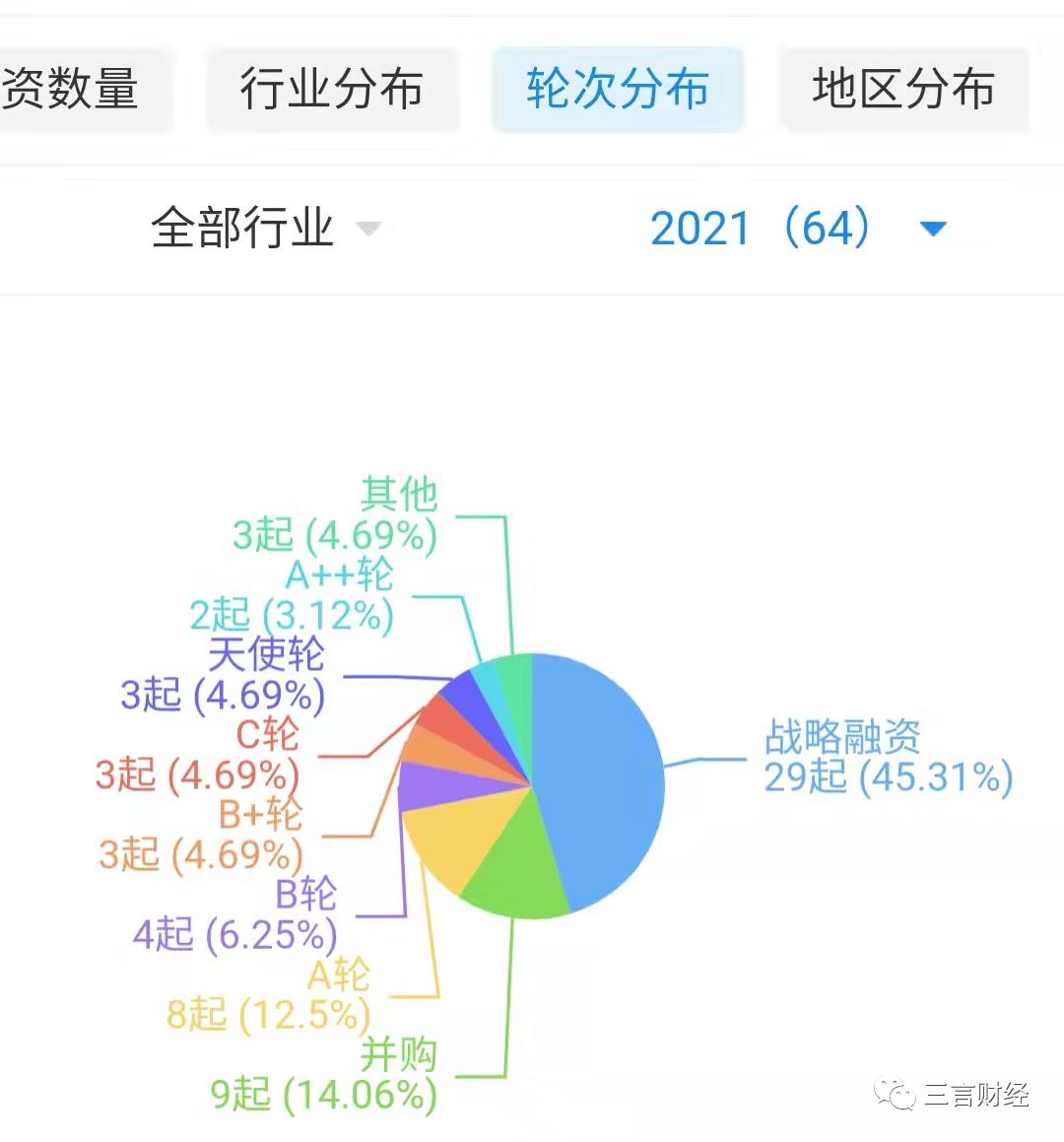 从轮次来看,战略投资占比超45%,其次就是并购和A轮、B轮。