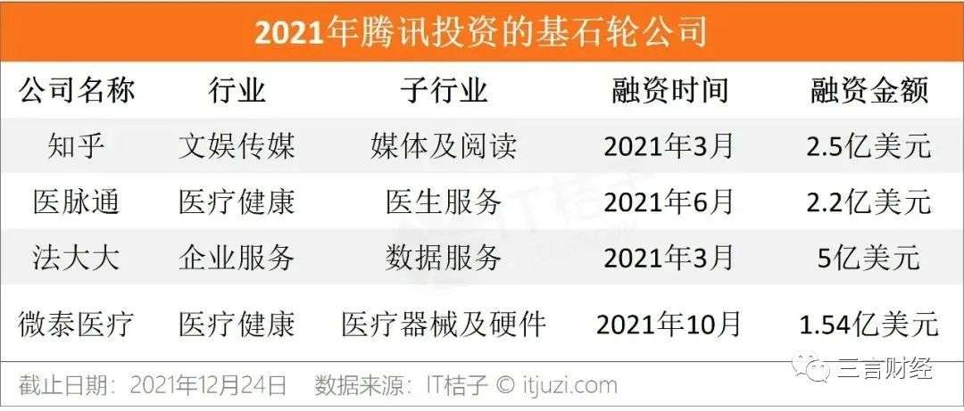 2021 年腾讯做基石投资的共4家公司,其中有3家公司已经实现上市,包括知乎。
