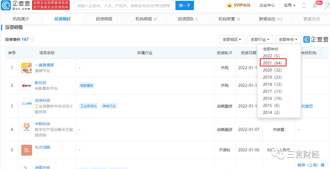 其中2021年,字节跳动参与的投融资事件超60起,为历年最高。从行业来看,囊括短视频、教育、电商、金融、游戏、企服等多个领域。