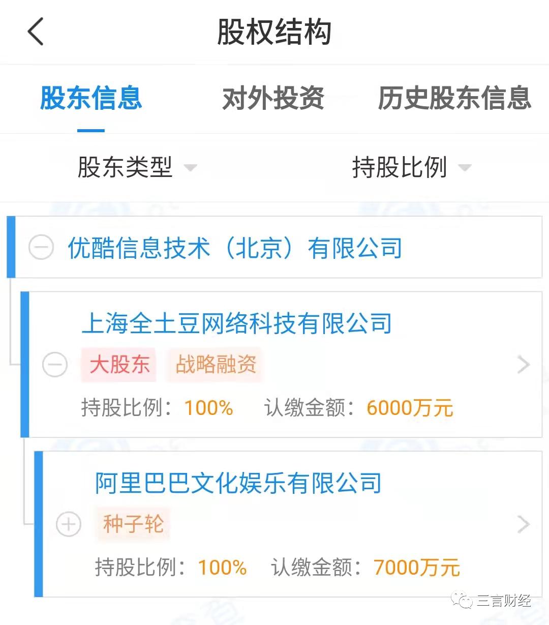今日,优酷新增工商变更,阿里文娱退出股东,土豆网成新股东,持股100%。