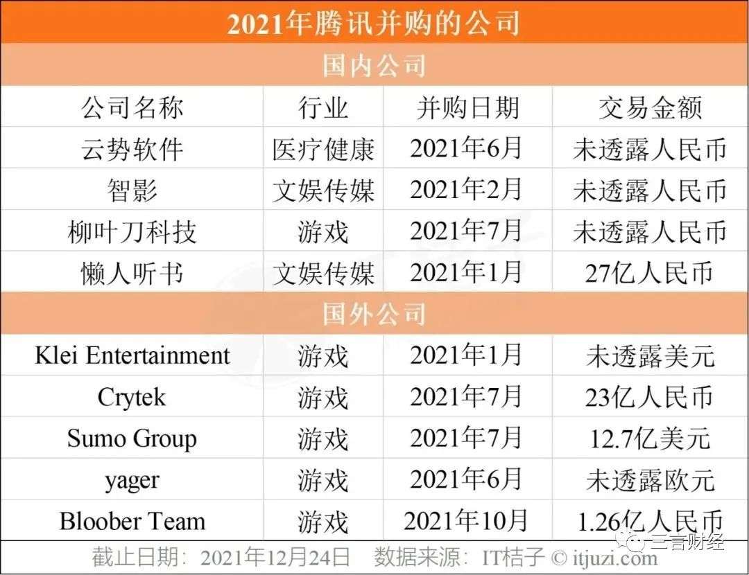 2021年,腾讯并购了9家公司, 其中4家是国内公司,5家是国外公司。9家公司中有6家为游戏公司。