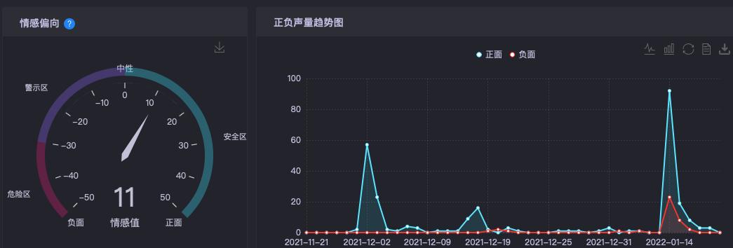通过时趣洞察引擎对“孙杨&直播”检索发现,尽管社交平台上评价两极化,在正面声量出现的同时参杂着负面声量,但是网友对孙杨整体的情感偏向还处于安全区内,正面的反馈更多一些。