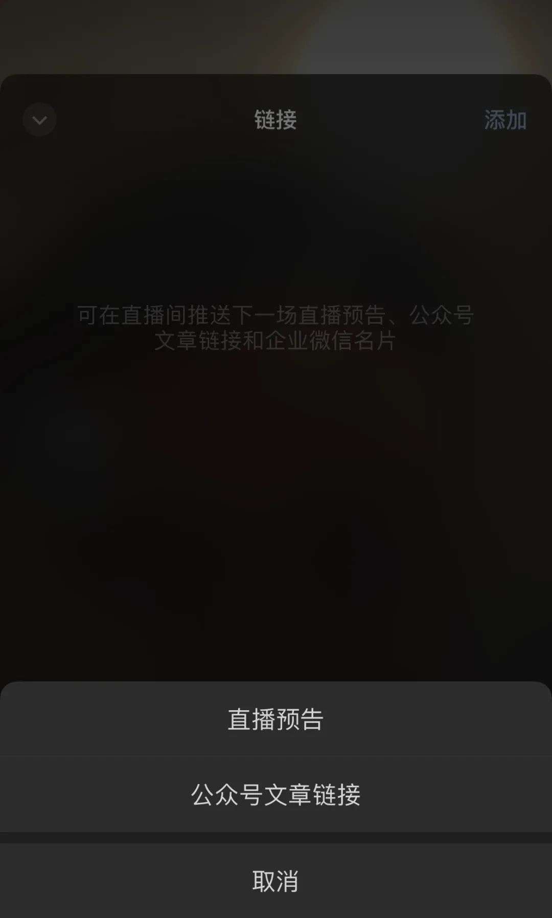 昨天我在鼓捣微信视频号的时候发现了一个新功能,视频号直播可以携带公众号文章链接、直播预约链接以及企业微信名片了。