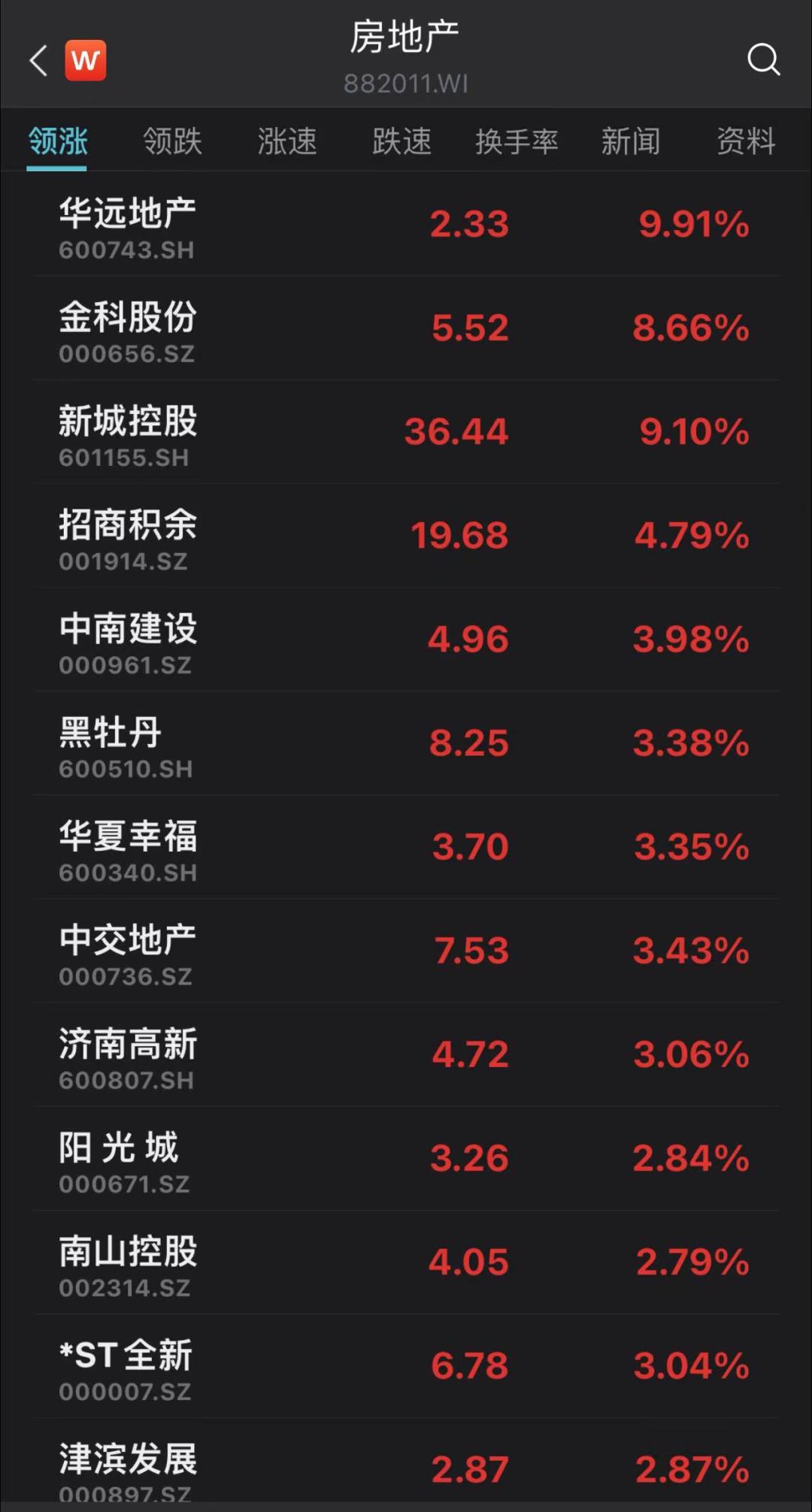 或受消息影响,今早开盘房地产股集体高开,华远地产、新城控股涨超9%,金科股份涨8.66%。