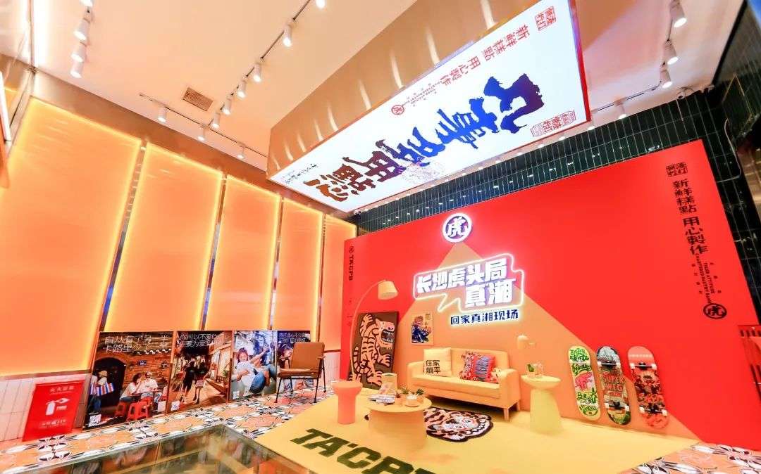 奈雪梦工厂的“中式戏院”概念,也是一种做法:中式吊幔、堆头、电子屏等物料与皮影戏等传统元素的结合,呈现出“看戏喝茶吃点心”的茶饮场景。