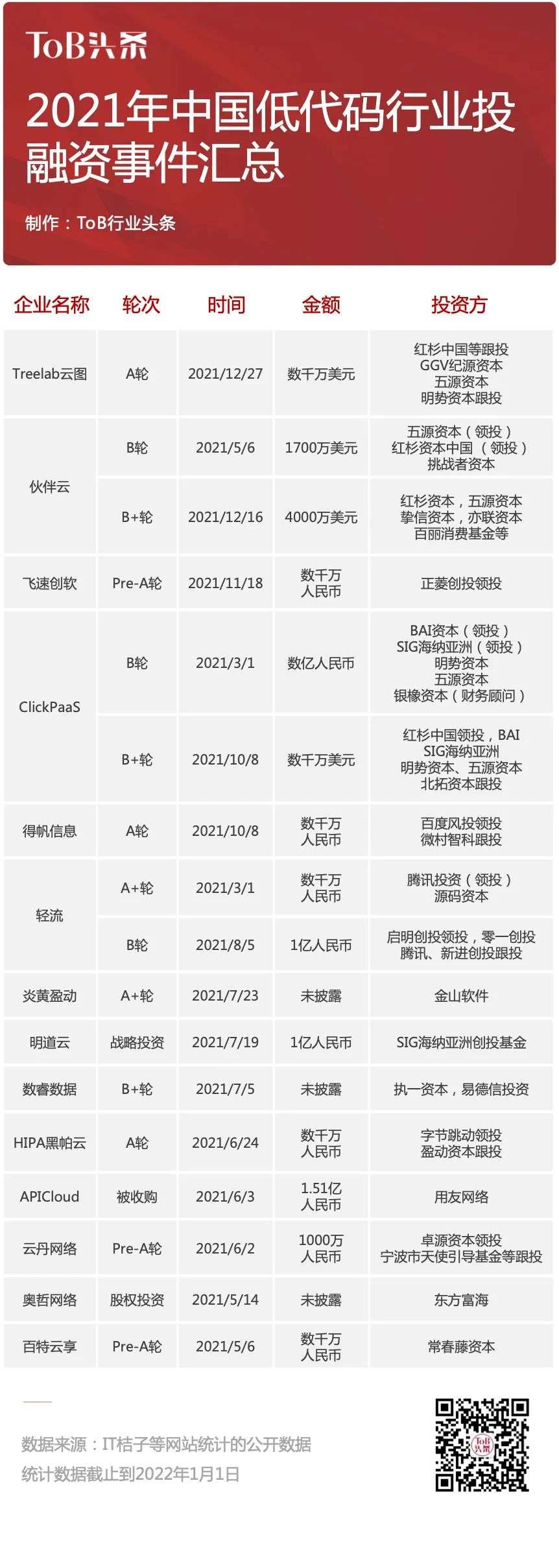 可以看出,在资本激发之下,“Low-Code(低代码)”这一由Forrester于2014年首次提出的概念加速落地起势。
