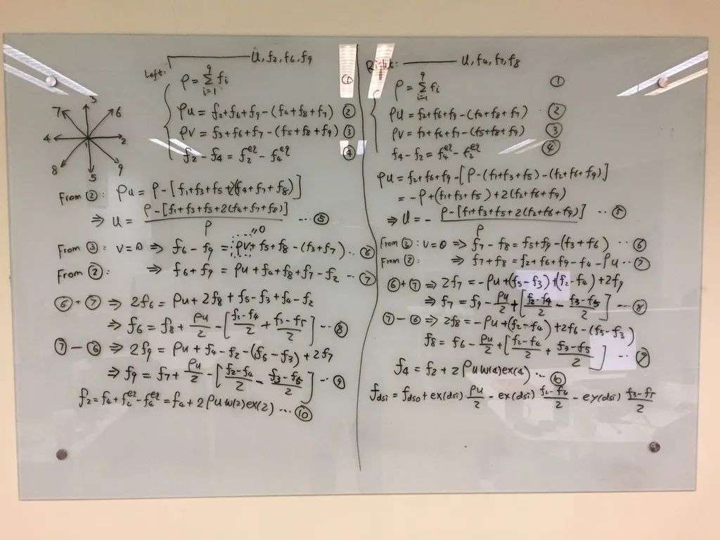 与MAC、SIMPLE算法不同,开发LBM流体求解器最难的是如何让密度函数在边界处变得更有实际物理意义,对于不同边界,我们要不断地思考、平衡各种分布函数可能存在的状态,如果边界条件做不好,那其实不光是算不算准的问题,而是能不能算的下去的问题,因为在很多情况下,如果边界条件设置不对,流体求解是会崩溃的,没有人希望一个模拟计算算到60%崩溃掉了,那样我们什么有意义的结果也获得不了,这可能是物理求解器和大部分所谓算法的最大区别。