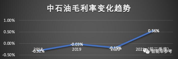 2018年到2020年3年间,中石油成品油销售毛利率分别是-0.32%,-0.026%,-0.19%,到2021年前三个季度,毛利率为0.56%。