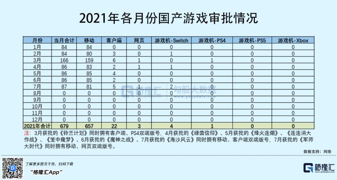 而在去年,在版号总量严控的背景下,公开数据显示,截至12月31日,2021年游戏版号总量明显下滑,全年版号累计发放数量仅为755个。而在发布7月份过审游戏版号后,版号发放已经暂缓了超过五个月。