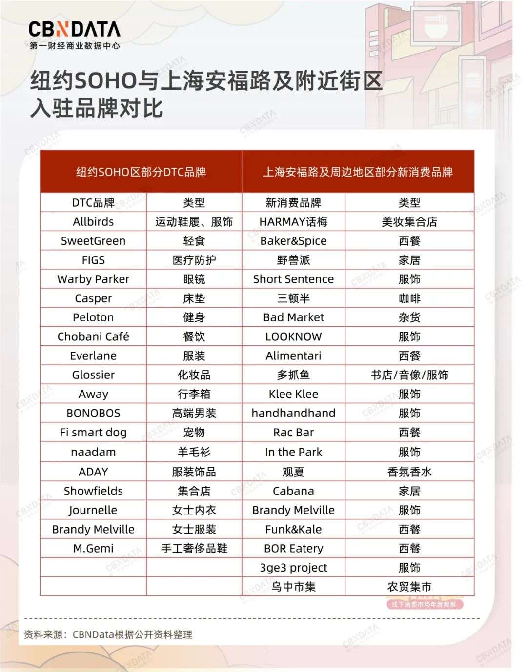 对比入驻SOHO的DTC品牌大多已上市或即将上市,上海安福路街区的新消费品牌多数仍在融资阶段。从涉及品类上看,SOHO的品牌涵盖的品类更丰富也更细分,包括宠物、床垫、眼镜、奢侈品服饰、医疗人员功能设备等等,而安福路街区的品牌仍以衣食为主。换句话说,SOHO的商业形态更多样,这样的多样性不仅满足了当地居民的生活需要,给了SOHO更长久的生命力,也实现了流量互补,帮助不同的消费品牌吸引新客。而由于SOHO艺术街区的底色,入驻其中的所有商业门店都要比其他街区更加讲究品位、格调以及商品的原创性——这些都是国内网红街区暂时所不具有的。
