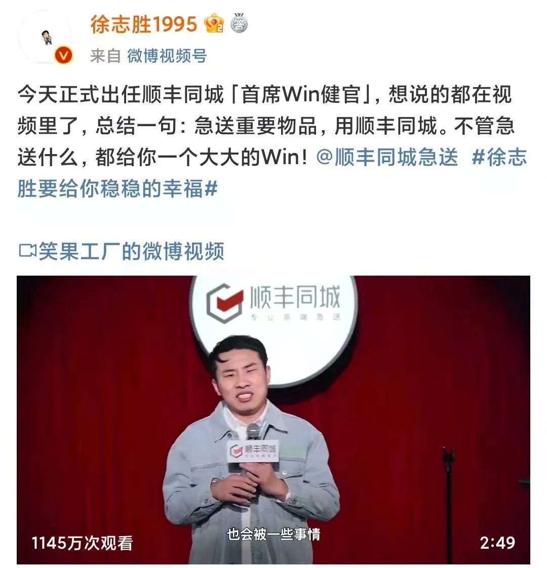 例如在徐志胜与顺丰同城急送的商务合作中,品牌就充分结合徐志胜标志性的口音,利用其脱口秀中搞笑的“win号”梗,让其化身顺丰同城急送的“首席win健官”,强调送货“又快又win”;徐志胜曾在节目中讲述职场段子,JOJO气泡酒就让他化身职场新人,讲述自己的“志胜法宝”。