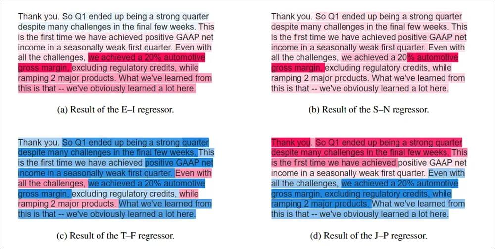 接着,研究人员将CEO的言论与随后的股价变化关联起来,生成一种算法,该算法可以突出显示出可能对股价产生正面或负面影响的言论部分。