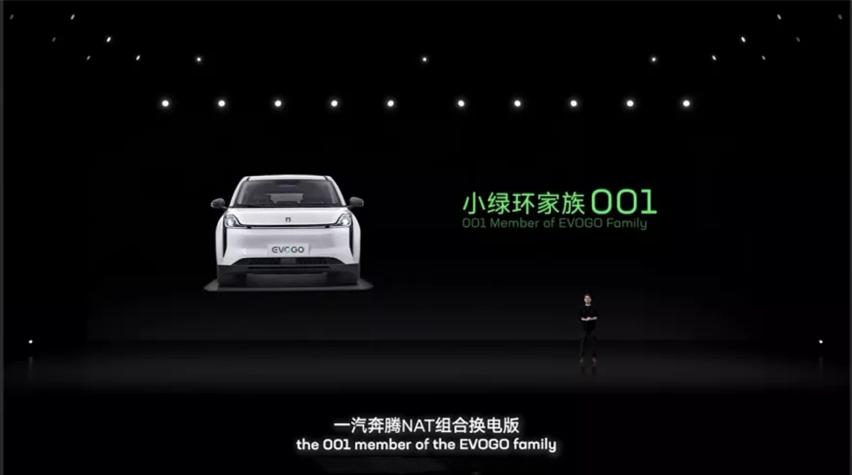 发布会上,官方一同发布了EVOGO的001号成员——一汽奔腾NAT 组合换电版,由此我们也能一窥宁德时代期望通过换电,实现统一电池设计、制造、接口等方面标准的野心。