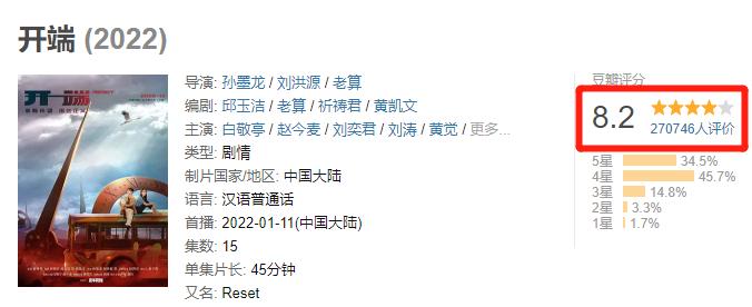 除了有作为爆款剧的热度,《开端》还难得地拥有尚佳的口碑。刚刚上线一周,《开端》不光在知乎达到了91%的推荐值;在豆瓣上,有27.7万人共同打出了8.2分,分数可以排在2021豆瓣电视剧的第五位,而热度也暂列目前豆瓣电视剧热度榜第一名,顺理成章地成为了“开年第一炸”。
