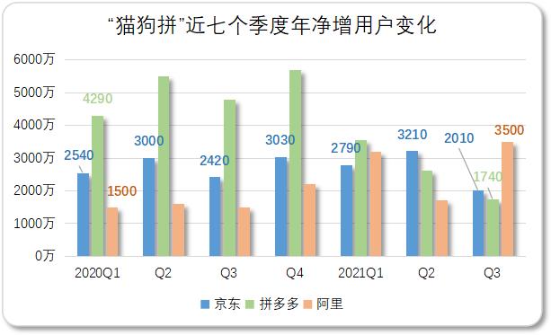 京东的拼购(京喜)与社交电商(东小店)两条路都没有顺利地在下沉市场建立优势,如果对比淘特为阿里零售体系带来的增量,则更能形成鲜明对照:2021年前三季度,京东累计新增用户8010万,阿里电商业务累计新增用户8400万。
