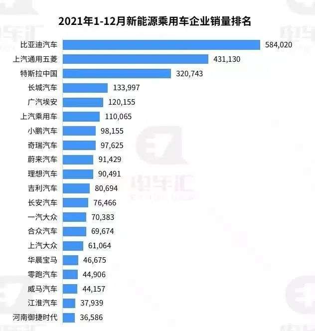 在乘联会公布的2021年新能源乘用车企业销量排名中,前四名有三家为中国自主品牌,唯一的一家外资车企是特斯拉中国,排名第三。长城排名在特斯拉中国之后,不过两者的销量差距依然很大,长城欧拉不及特斯拉中国的一半。