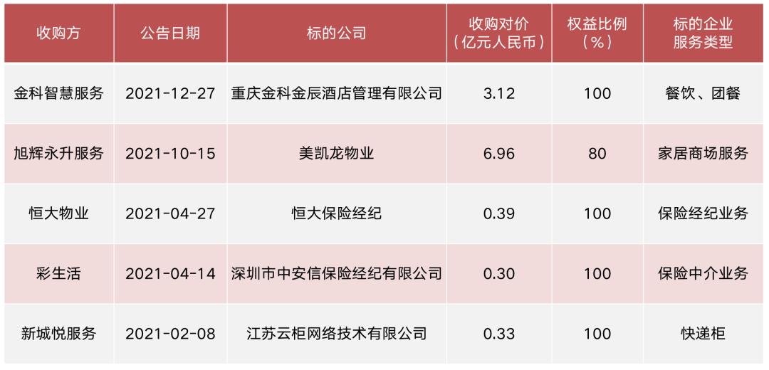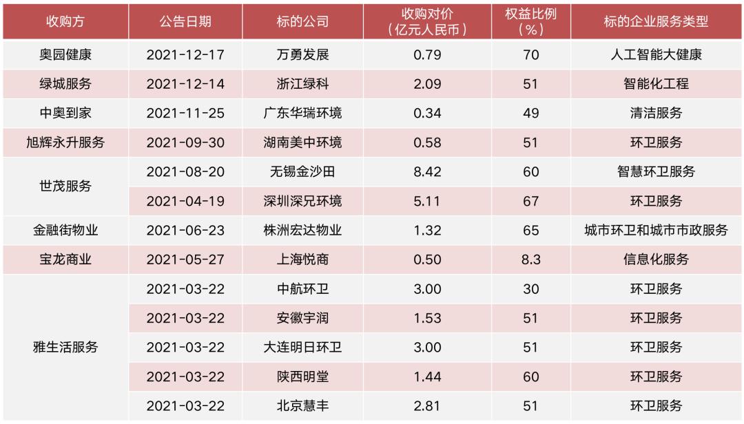 图:2021年以来上市物企在增值服务领域收并购事项一览