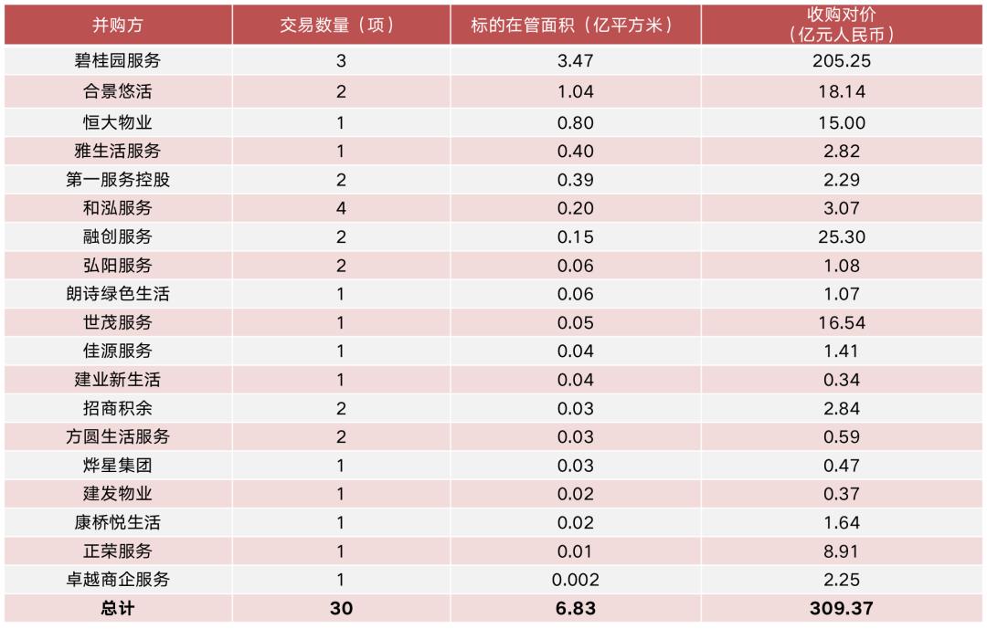 当前,行业的市场格局仍较为分散且竞争较大,扩规模、提高市场占有率,仍是物企重要的诉求之一。其中,收并购是企业快速提高管理规模的重要方式。