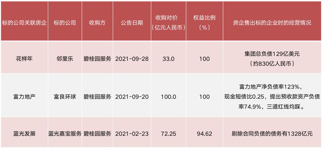 因融资政策收紧,部分房企出现现金流紧张,风险频发,为缓解流动性压力,部分房企出售旗下物企换取现金,引发行业多项重大收并购。例如,碧桂园服务收购蓝光嘉宝服务、富力物业、彩生活部分核心资产邻里乐等。
