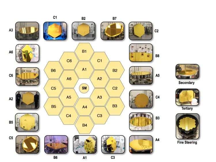 18个镜面,每个都有单独的控制系统。图源NASA