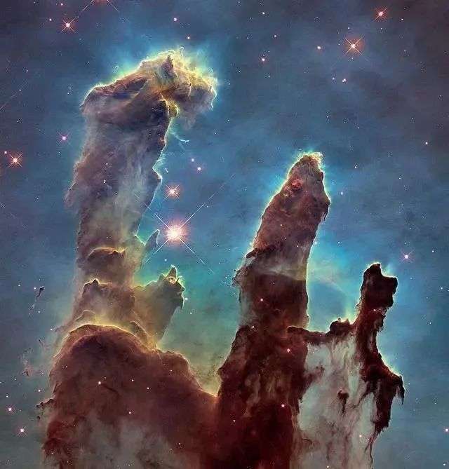 20世纪天文学最具标志性的图片:“创世之柱”(Pillars of Creation) ,由美国太空总署用哈勃太空望远镜拍摄于1995年,照片中的天体为 6500 光年以外的天鹰星云,即“M16星云”。图源NASA