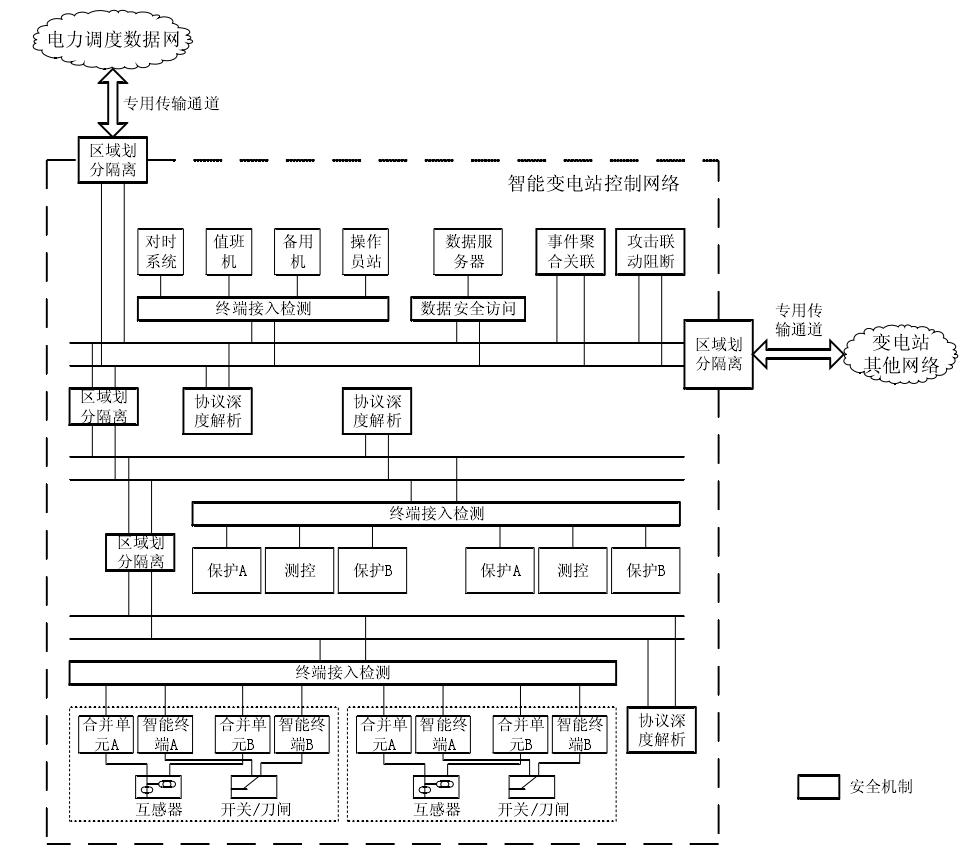 根据智能变电站控制网络安全防护的需求,从以下几个方面构建智能变电站控制网络的安全防御体系: